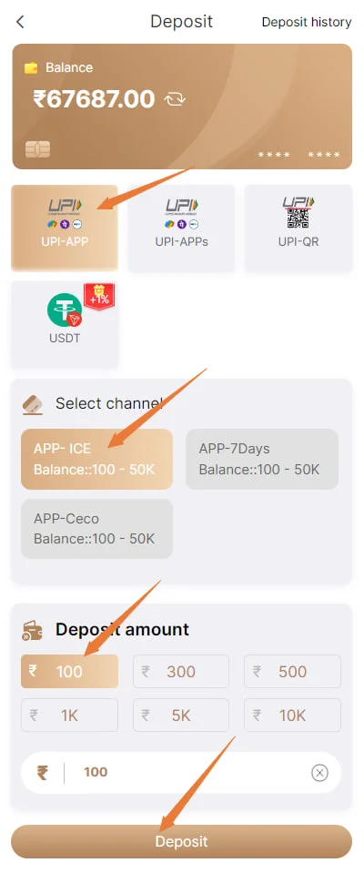 Withdrawals are processed instantly to your bank account, UPI, or digital wallet. There’s no minimum withdrawal limit, and all transactions are free of charge.
